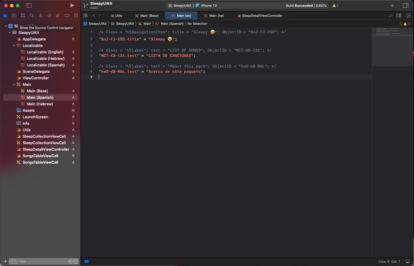 The Main(Spanish) file is translated. The rest of the app will gradually be translated as we move. Now that we’ve just learned how to localize storyboards, you can follow the same steps and localize the storyboard for Hebrew.