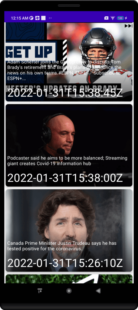 Currently, we have a news app that displays a list of news articles fetched from News API. Each article contains an image, a headline, as well as a timestamp corresponding to when the article is published. We'll use the java.time API to internationalize and localize the timestamp into something more intuitive and familiar to our app users across the globe.