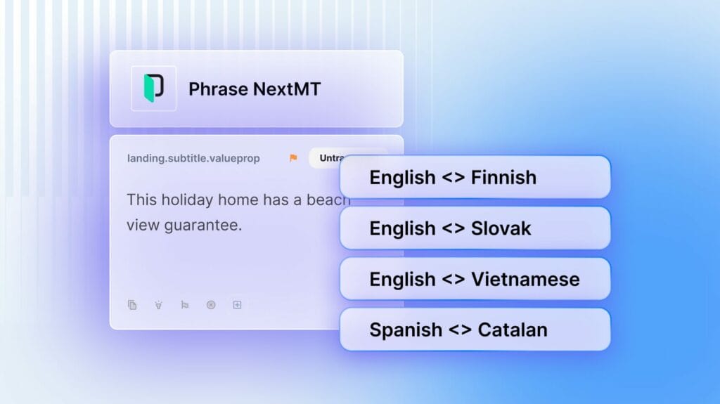 We’re expanding options for clients with a range of new language pairs in Phrase NextMT. You can now enjoy the advanced capabilities of NextMT across a broader set of languages, including Finnish, Catalan, Vietnamese and more.