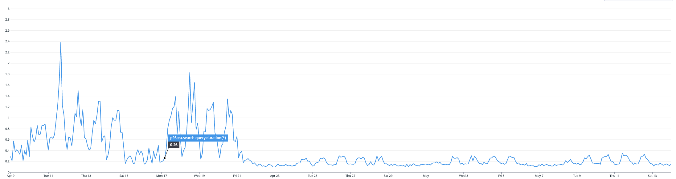 To ensure Phrase Strings keeps meeting the growing enterprise needs of its customers at speed, our engineers delivered 3 key improvements to the OpenSearch cluster in the backend, resulting in an approx. 4x faster search response time: