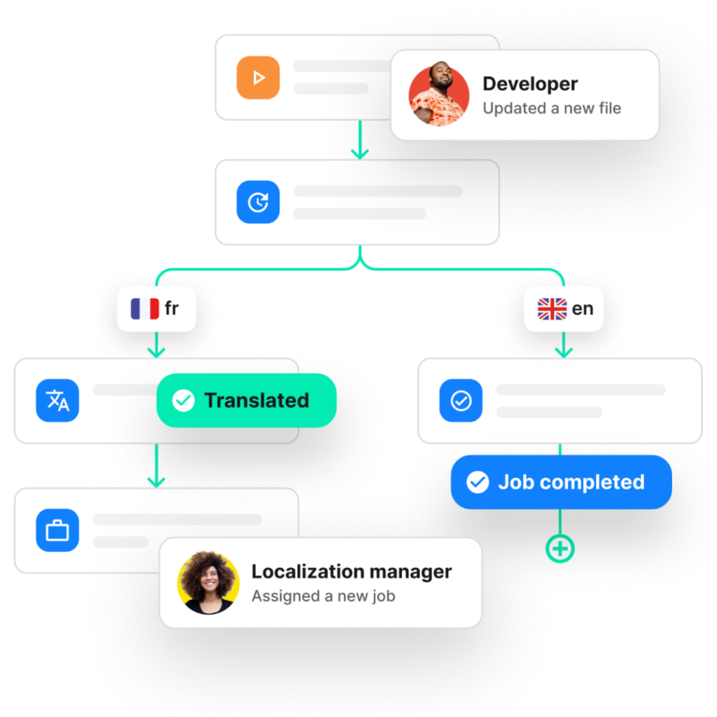 Gestiona millones de cadenas en un solo proyecto y ahorra hasta un 50 % del tiempo que dedican tus desarrolladores a preparar y enviar archivos para traducir.