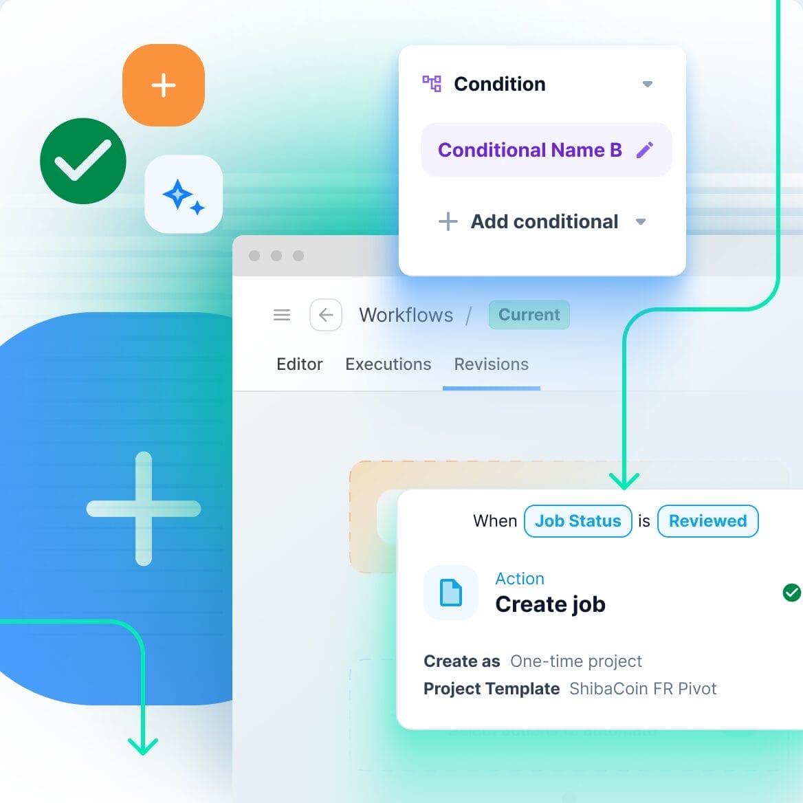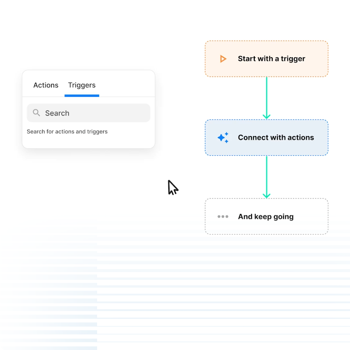 Nuestro intuitivo editor de flujos de trabajo es extremadamente sencillo. A la par que creas nuevas automatizaciones, algunas funciones, como la ramificación de flujos de trabajo, el filtrado de eventos y las referencias dinámicas, se muestran con suma claridad para gozar de revisiones más rápidas y una mejor colaboración.