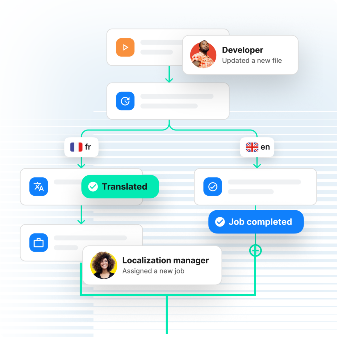 Cuando una empresa se expande a nuevos mercados, los procesos de localización se vuelven más complejos a medida que el contenido se extiende a distintas culturas e idiomas. En un momento dado, el nivel de complejidad es tal que se hace necesaria una solución de automatización a medida para cumplir con los objetivos de la empresa (y librar a los equipos de repetitivas tareas manuales). Al permitir automatizar flujos de trabajo directamente a tus equipos de localización, las organizaciones internacionales tendrán mucha más confianza en su consistencia y capacidad de cumplir plazos de entrega en todas las regiones.