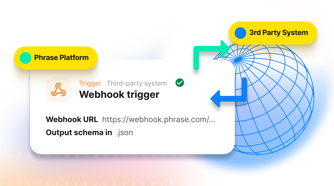 Phrase Orchestrator se integra perfectamente con sistemas externos que admitan webhooks, para que automatices tus flujos de trabajo en plataformas externas.