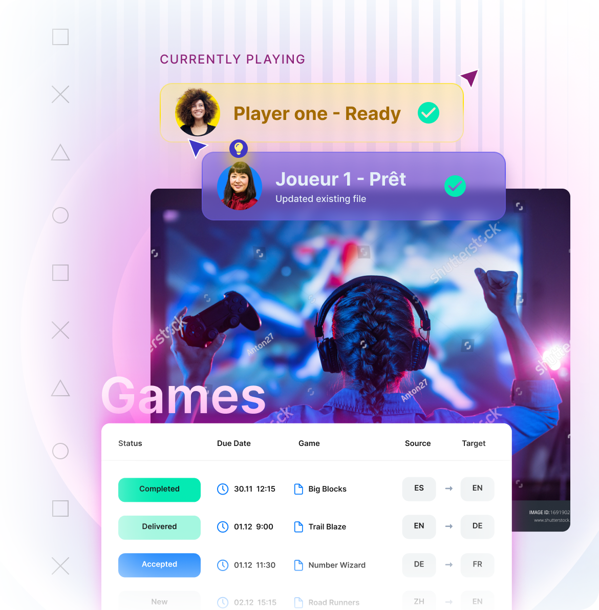 また、ゲームは定期的にアップデートされ、モバイル分野では毎日更新されることもあります。このような配信には、手間のかからない継続的なローカリゼーションプロセスが必要です。