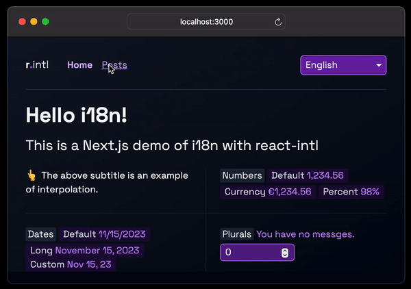 🗒️ Format.JS is a set of ICU-compliant JavaScript i18n libraries. react-intl extends Format.JS with handy React components and hooks. In this article, where we focus on React/Next.js, we will use the terms “react-intl” and “Format.JS” interchangeably.