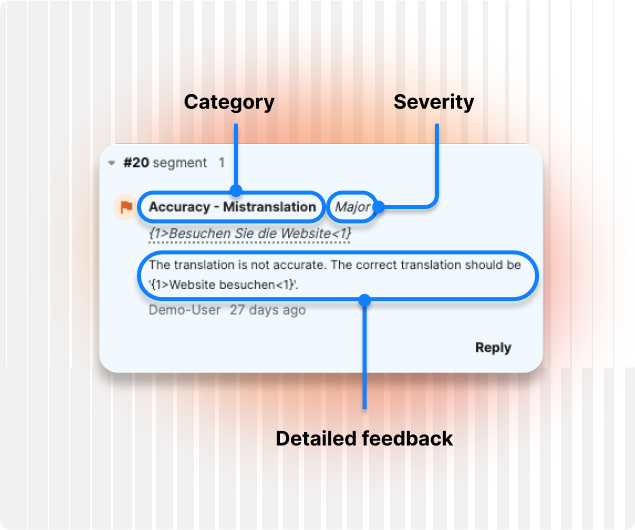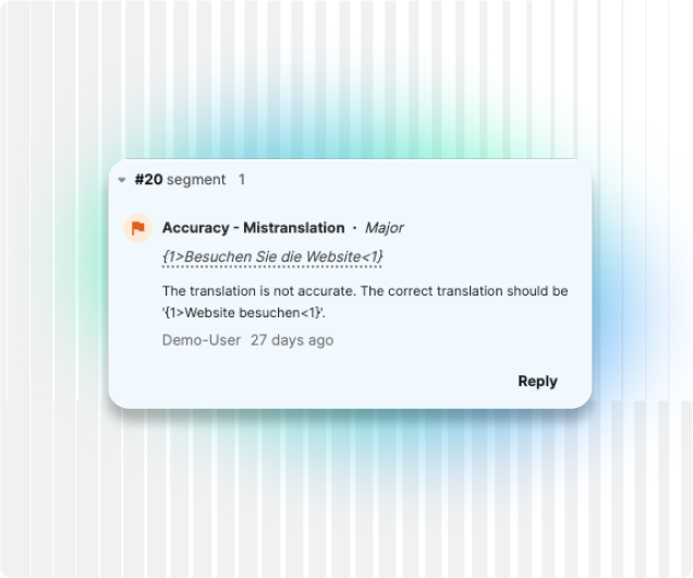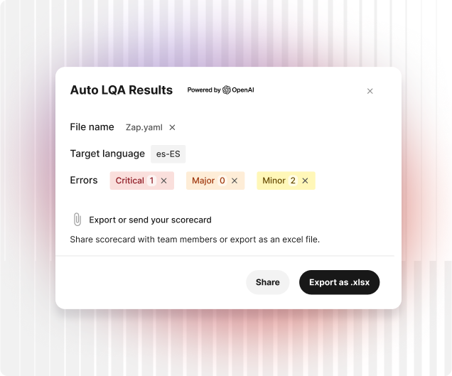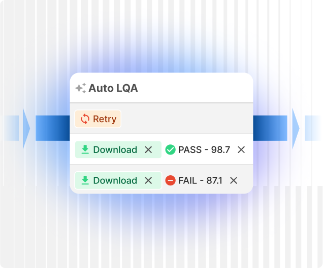 Auto LQA se encarga del primer control de calidad, tal y como ocurre al pretraducir un archivo antes de que un traductor humano empiece a trabajar. De este modo, tus lingüistas podrán poner el foco en corregir y validar los resultados y ahorrar así tiempo y esfuerzo.