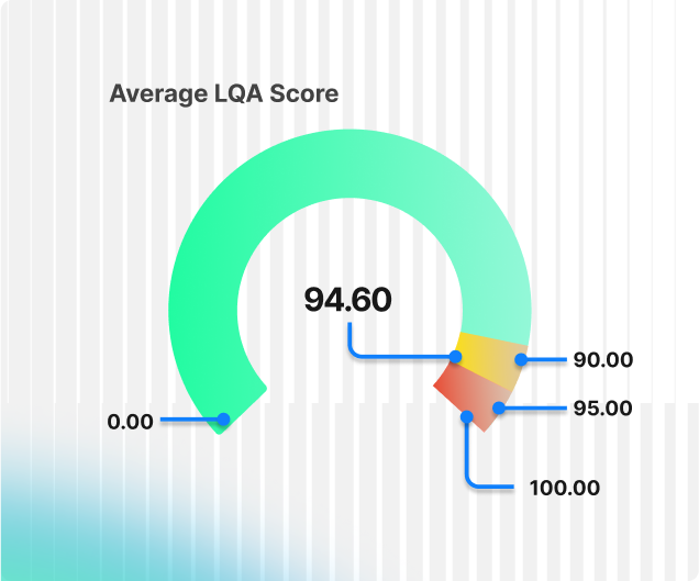 Auto LQA deja resultados de alta calidad, que más tarde un experto validará o editará si es necesario. Así, al combinar un flujo de trabajo mediante IA con la perspectiva humana, la precisión está garantizada, además de reducir el coste de LQA en hasta un 65 % y el tiempo de procesamiento en casi un 99 %.
